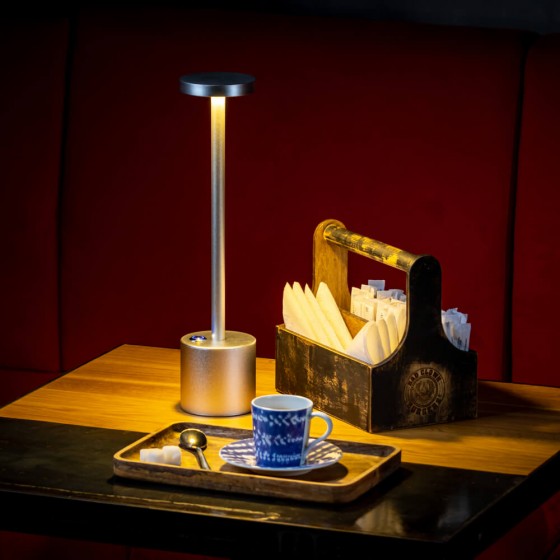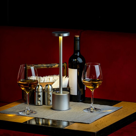 Акцентное освещение столов с помощью беспроводных светильников Wiled, украсит летнюю площадку Вашего заведения и создаст атмосферу уюта и комфорта для Ваших гостей.